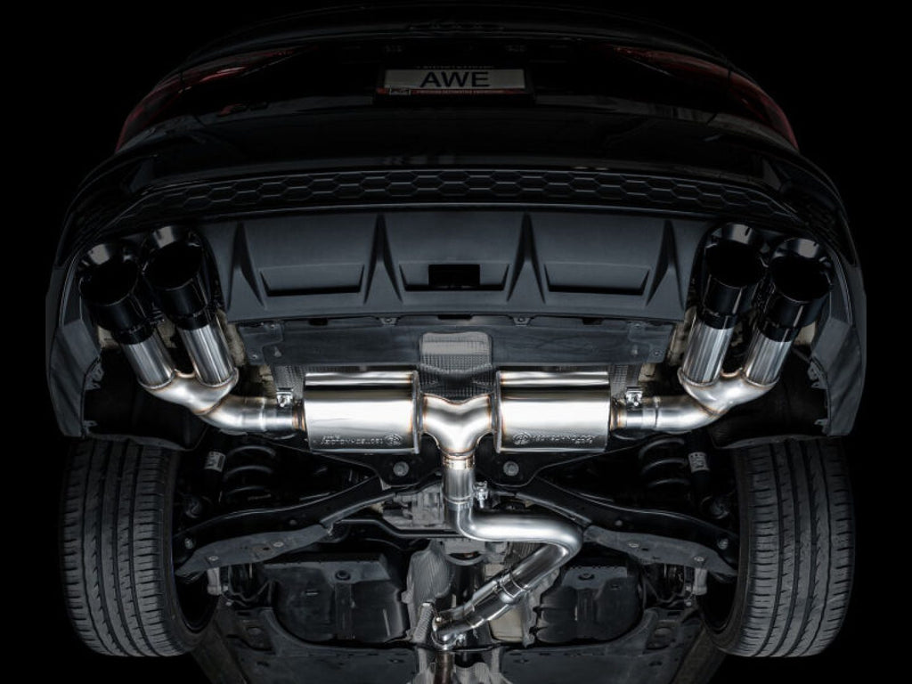 Introducing the first AWE Exhaust for the Audi S3 to ever feature patented drone-canceling 180 Technology®. The Touring Edition features a 3†inlet complete with an adapter to accommodate the factory downpipe perfectly while leaving an open 3†connection. In the rear resides AWE's patented 180 Technology® resonators responsible for maintaining straight-through performance while decimating drone-prone frequencies. Thanks to the design and construction of 180 Technology® resonators, the internals will not break down and degrade over time causing tone change. Just full-bodied, drone-free rumble for life from the point of installation. This configuration provides the best ratio of interior refinement and exterior rumble on the market. No valves needed. Switch driving modes and the exhaust will render the same result as a vavled exhaust. It's the do-it-all exhaust for every day drivers. Comes complete with quad 4.5" slash-cut, double-walled tips in diamond black. The AWE Touring Edition for the 8Y S3 is made in the USA and backed by AWE's Fitment Guarantee, 50 state emissions compliance, No Check Engine Light Guarantee, and the AWE Lifetime Warranty.